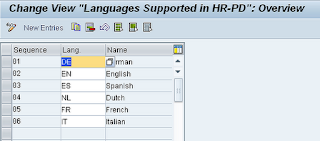 The language support setup maintained using this activity is a prerequisite to allow the maintenance of HR transactions (GRFN_STR_CHANGE) in additional languages. By default, SAP enables the following languages: